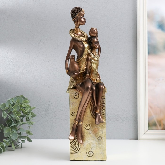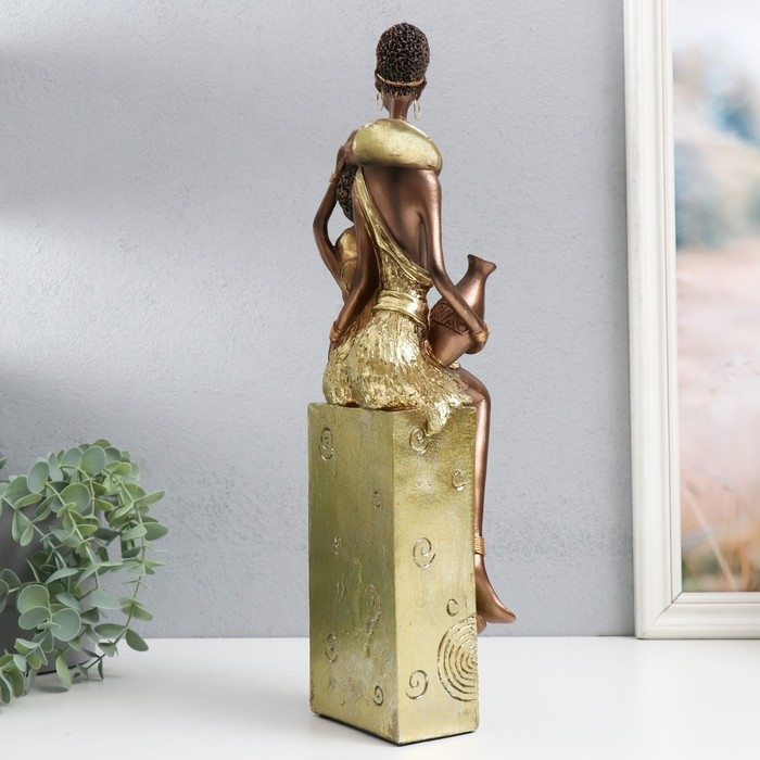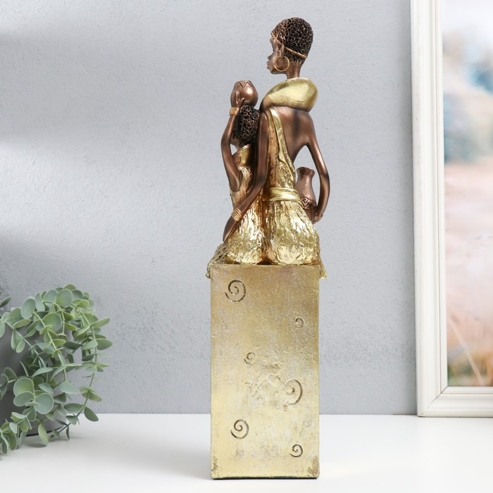 Сувенир полистоун "Африка - Мать и ребёнок" золото узор - круги 10,5х10х40 см