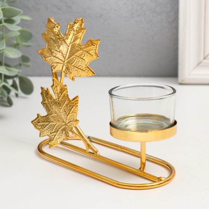 Подсвечник металл на 1 свечу "Кленовые листья" d=4,5 см золото 5,8х13х13 см
