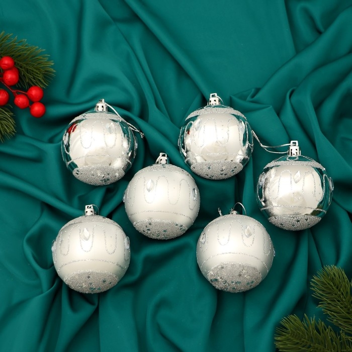 Набор шаров пластик d-7 см, 6 шт "Карнавальная ночь" серебро