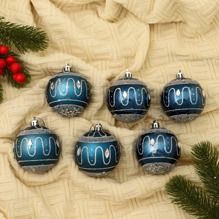 Набор шаров пластик d-7 см, 6 шт "Карнавальная ночь" синий
