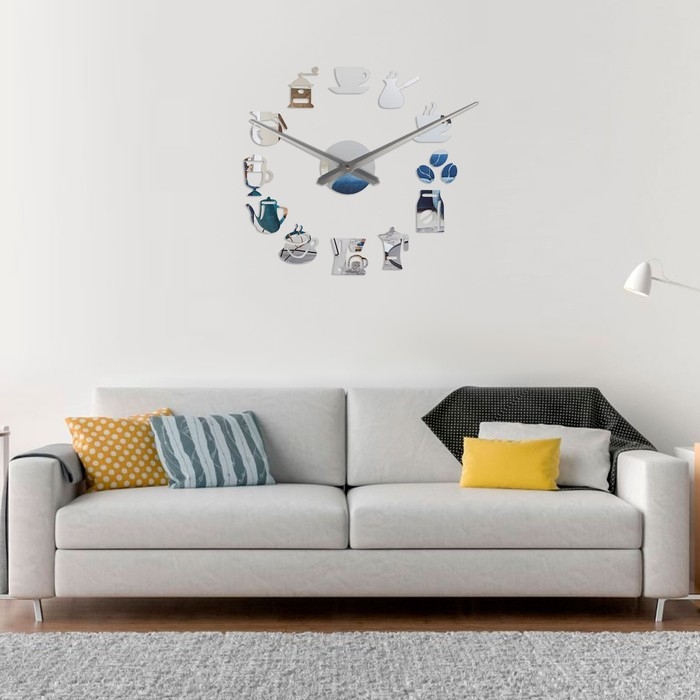 Часы настенные интерьерные большие для кухни, 3d "Время кофе", наклейка, d-120 см