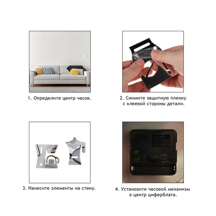 Настенные часы дополнят декор и интерьер вашего дома и станут отличным подарком близким людям. Стильные и красивые часы на стену с кварцевым механизмом будут украшением вашей кухни или столовой. Они работают на батарейке типа АА (в комплект не входит), имеют регулируемые размеры циферблата и 3д эффект благодаря вспененной основе. Клеящий слой позволяет разместить часы на различные поверхности: любые виды обоев, окрашенные, деревянные, пластиковые, керамические или металлические.