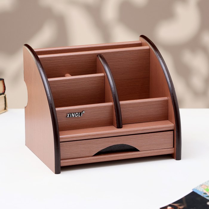 Органайзер 5 секций, 1 выдвижной ящик, серия Ясень шимо темный с кантом темным, 16*20,5