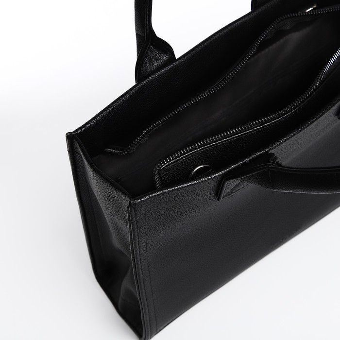Сумка женская на молнии, TEXTURA, средний размер, цвет чёрный
