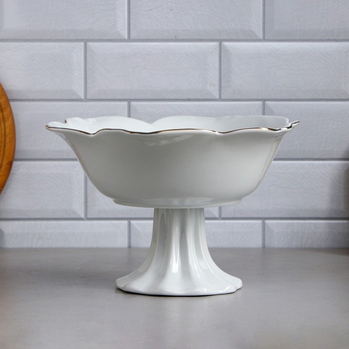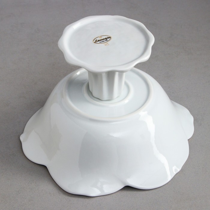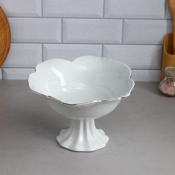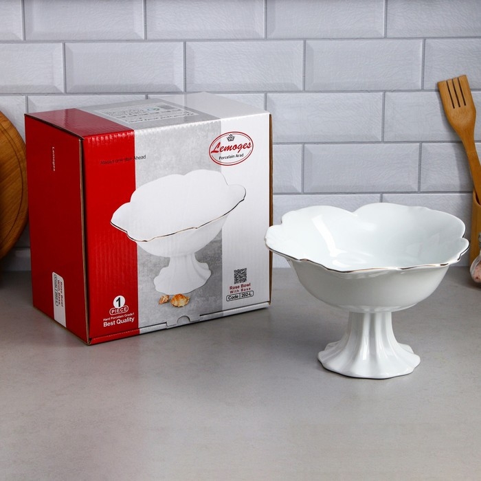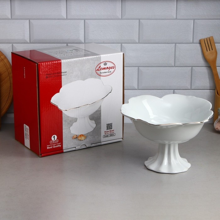 Салатник «Роза», на подставке, 1.5 л, золотая обводка, фарфор, Иран