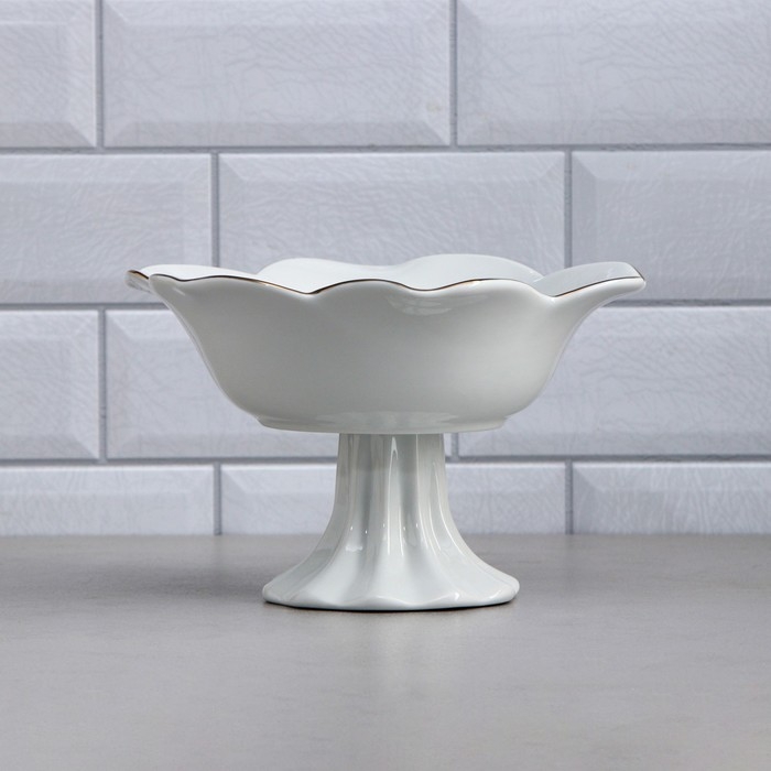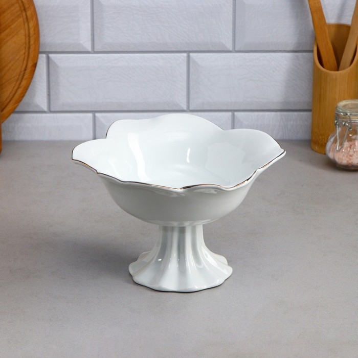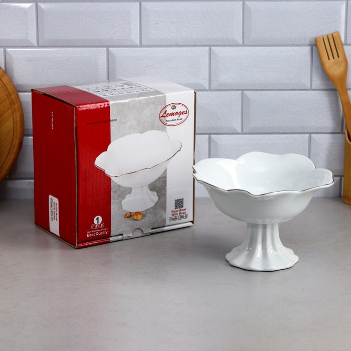 Салатник «Роза», на подставке, 800 мл, золотая обводка, фарфор, Иран