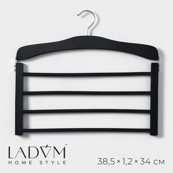 Плечики - вешалка для брюк и юбок LaDо́m Bois, 38,5×1,2×34 см, деревянная сорт А, многоуровневая, широкие плечики