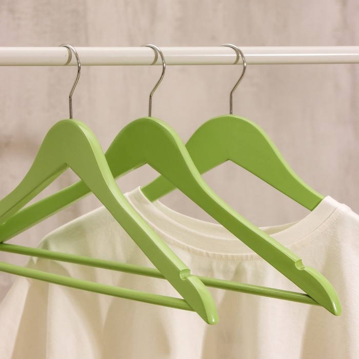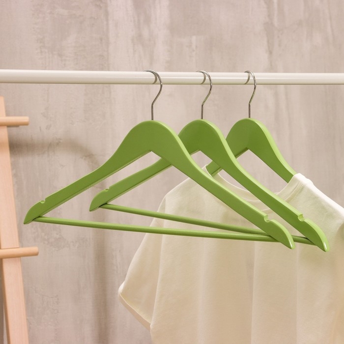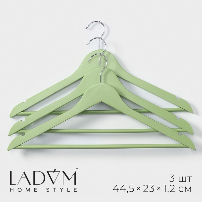 Плечики - вешалки для одежды LaDо́m Brillant, 44,5×23×1,2 см, 3 шт, деревянные, цвет фисташковый