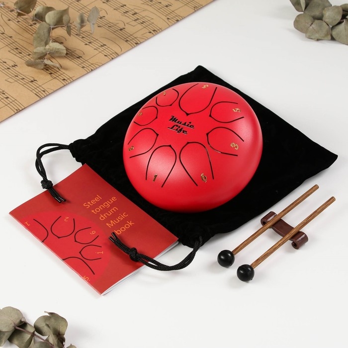 Глюкофон - музыкальный инструмент, красный, 8 лепестков, 15 х 9 см