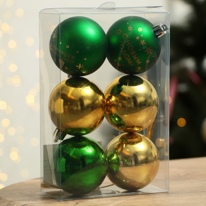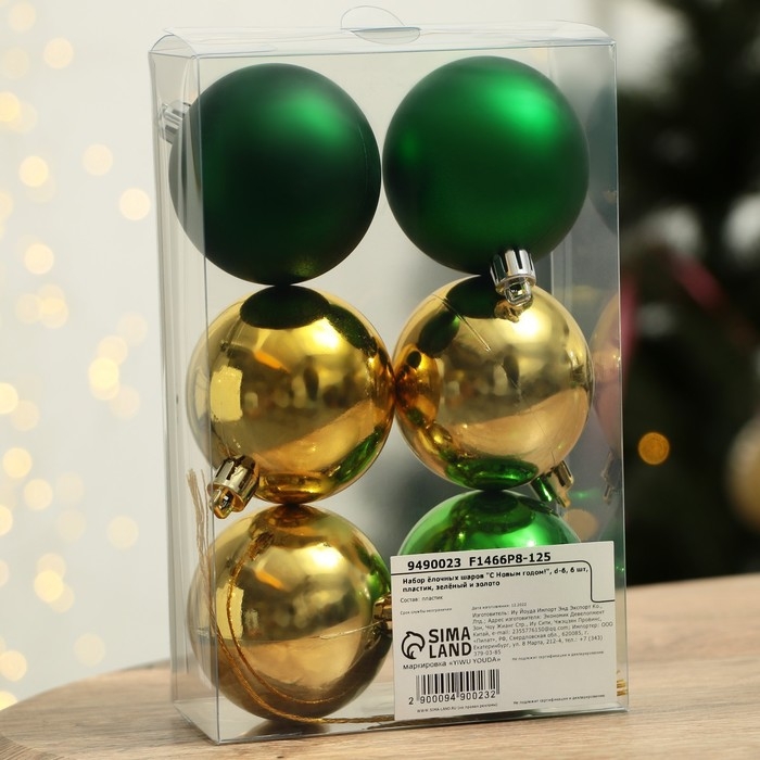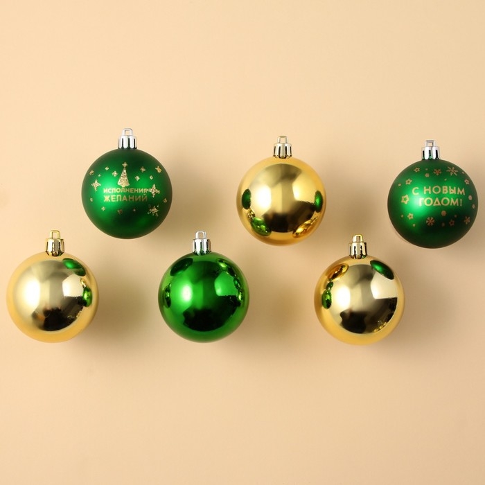 Шары ёлочные новогодние «С Новым годом!», на Новый год, пластик, d=6, 6 шт., цвет зелёный и золотой