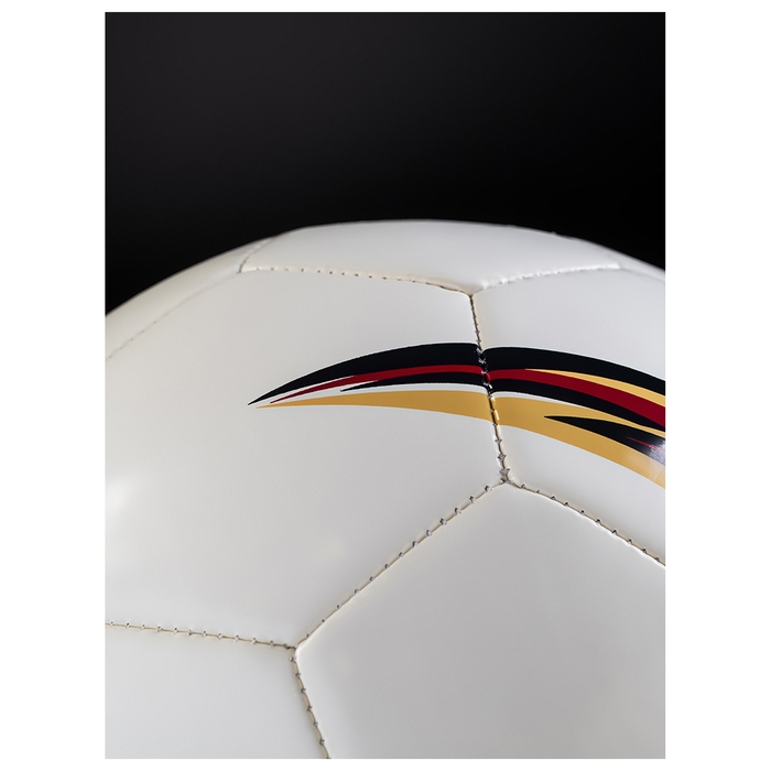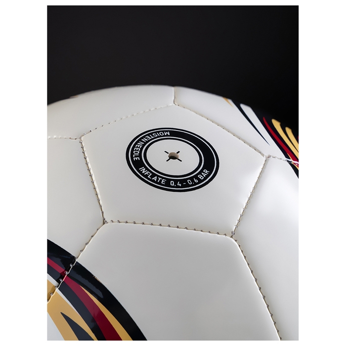 Покрышка мяча изготовлена из глянцевого термополиуретана с 2 подкладочными слоями. Латексная камера с наполнителем, армированная нейлоновой и полиэстеровой нитями, гарантирует низкий отскок.