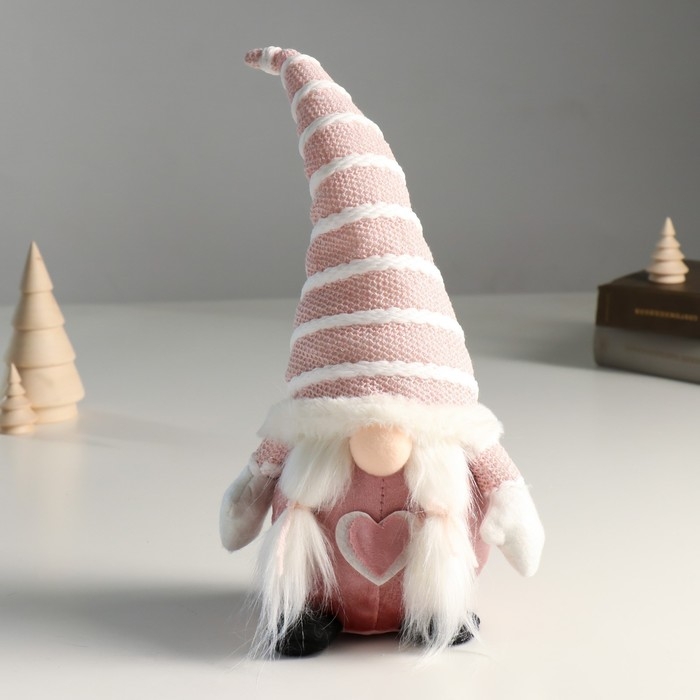 Кукла интерьерная "Бабусечка в розовом колпаке, с сердцем" 15х10х38 см