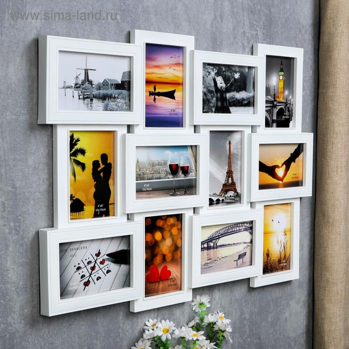 Фоторамка пластик на 12 фото 10х15 см "Лаконичность" белая 46х61 см
