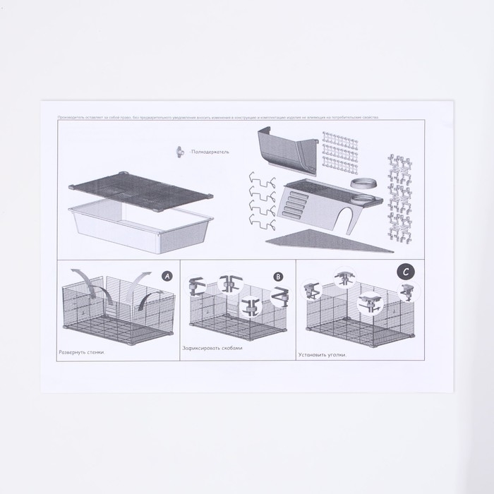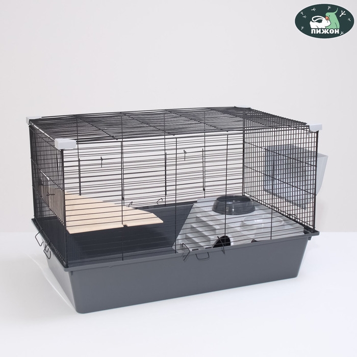 Клетка для грызунов "Пижон" №1 складная, 58 х 40 х 34 см (+миска, 2 кормушки), серая