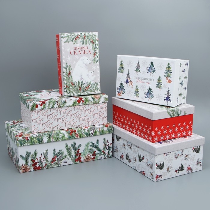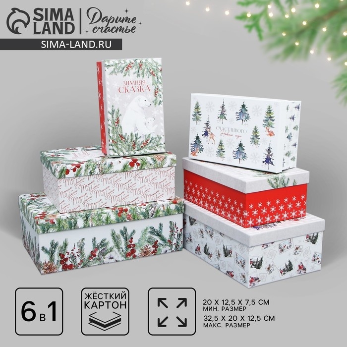 Набор подарочных коробок 6 в 1 «Новогодняя акварель», 20 х 12.5 х 7.5 ‒ 32.5 х 20 х 12.5 см, Новый год