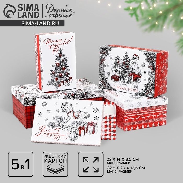 Набор подарочных коробок 5 в 1 «Уютного нового года», 22 х 14 х 8,5 ‒ 32.5 х 20 х 12.5 см, Новый год