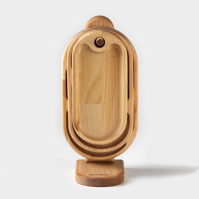 Набор деревянных менажниц и сервировочных досок на подставке Adelica, 3 шт, 25×14 см, 23×12 см, 21×10 см