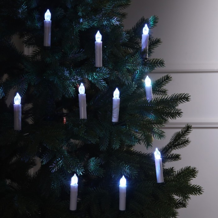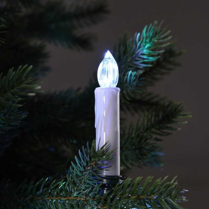 Светодиодные свечи на прищепках 10 см, 10 штук, батарейки ААх1 (не в комплекте), пульт ДУ, свечение белое