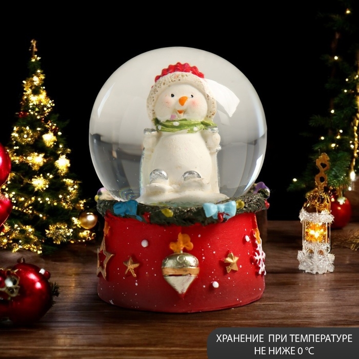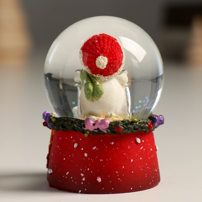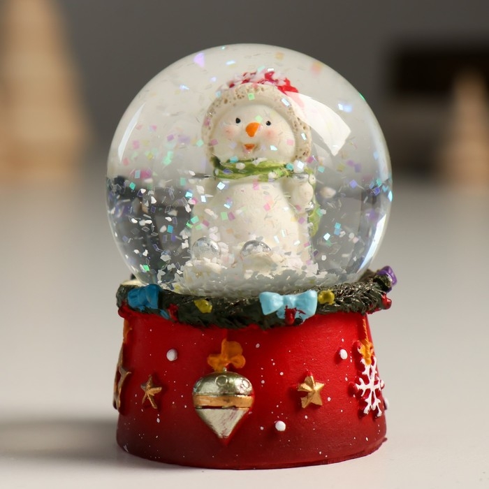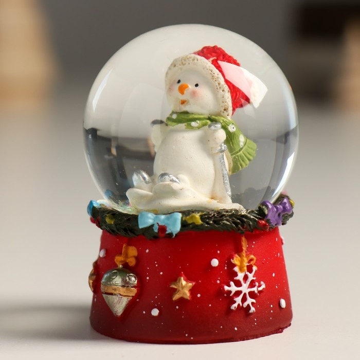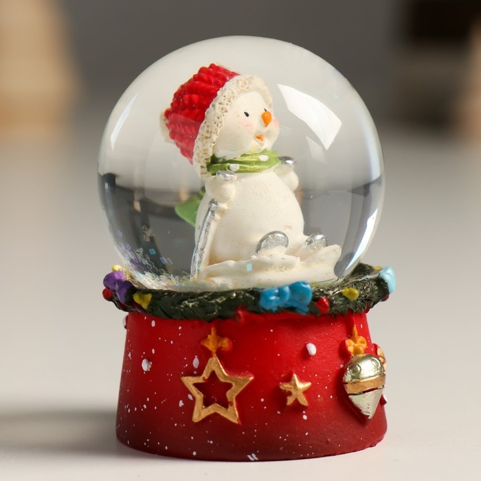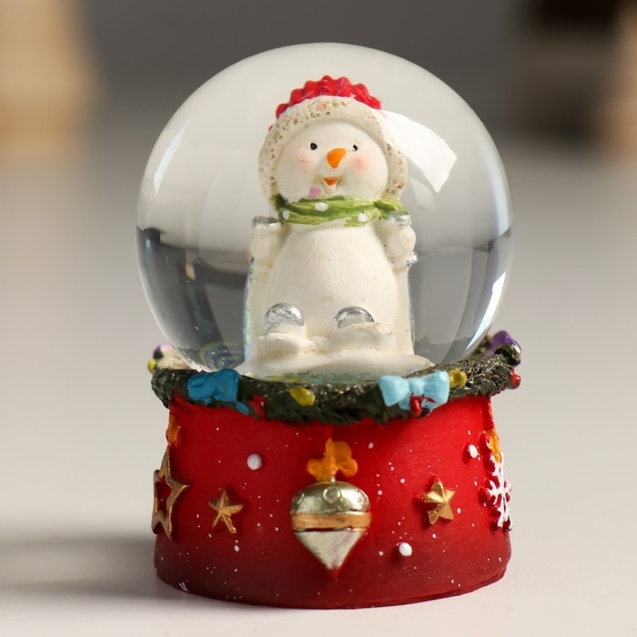 Сувенир полистоун водяной шар "Снеговичок в красном колпаке" 4,5х4,5х6,5 см