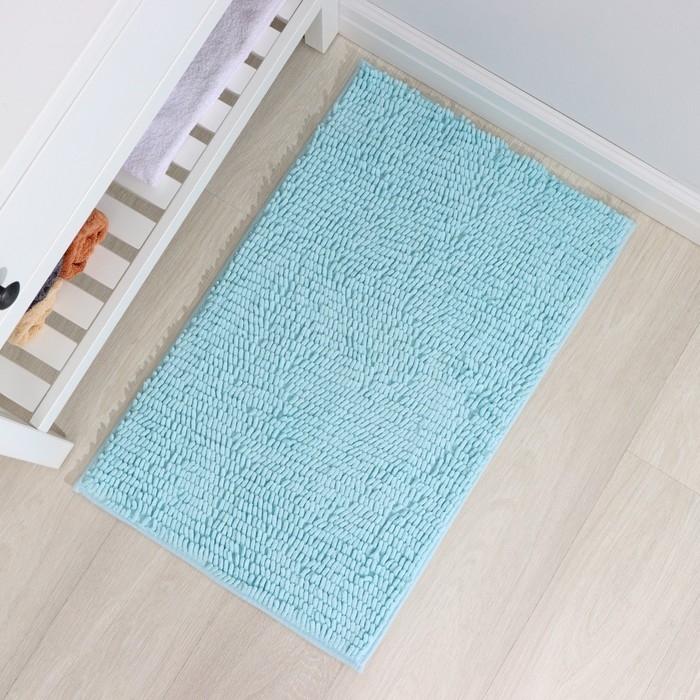 Коврик для ванной Доляна «Букли длинные», 50×80 см, длина букли 2 см, цвет голубой