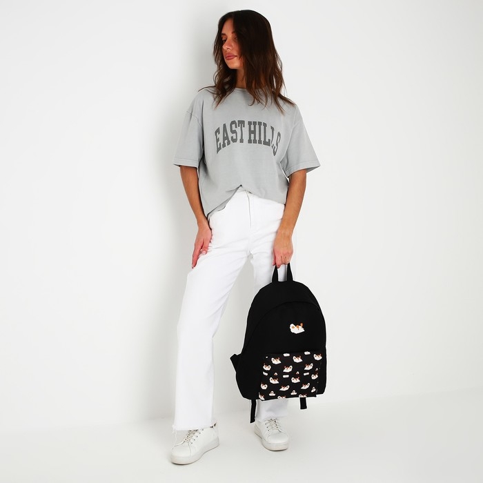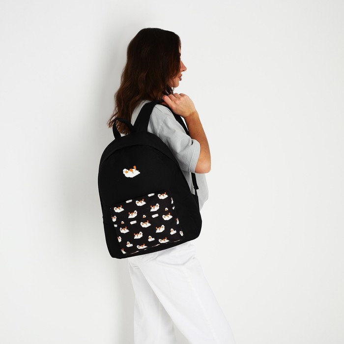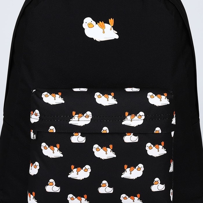 Рюкзак школьный текстильный «Уточки», с карманом, цвет чёрный