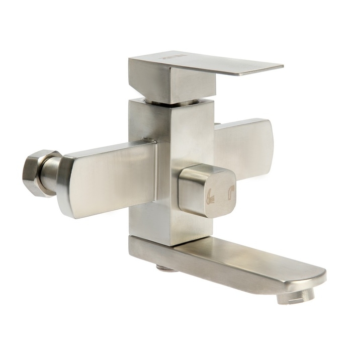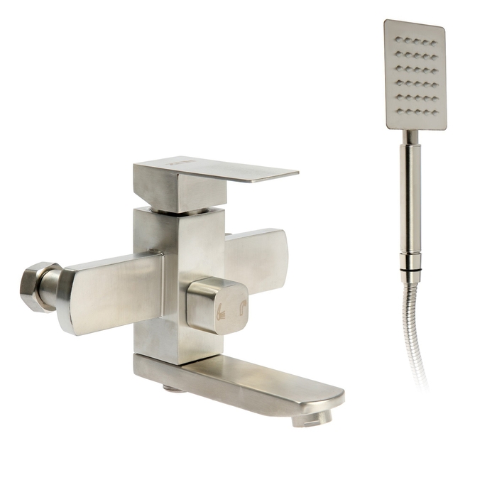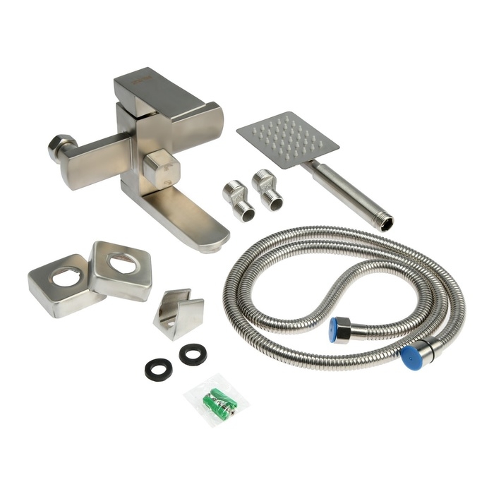 Смеситель для ванны ZEIN, квадрат, короткий излив, с душевым набором, нержав сталь, сатин
