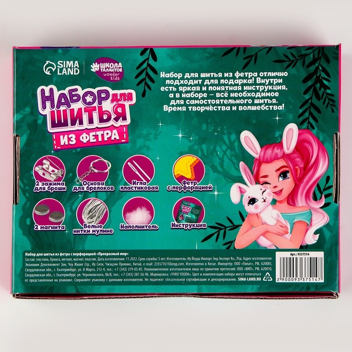 Набор для шитья. Игрушки из фетра своими руками «Прекрасный мир», с перфорацией