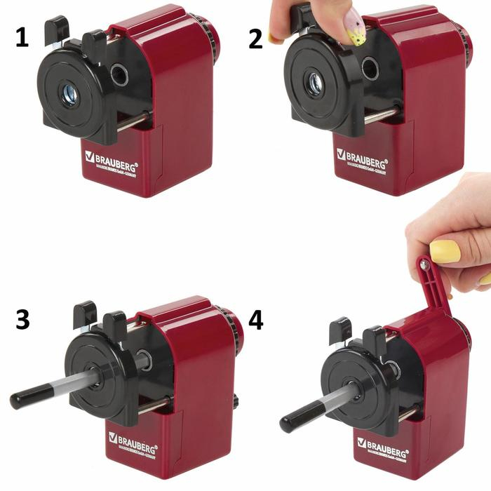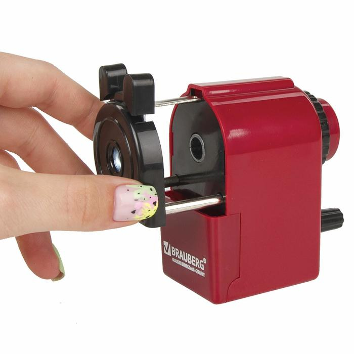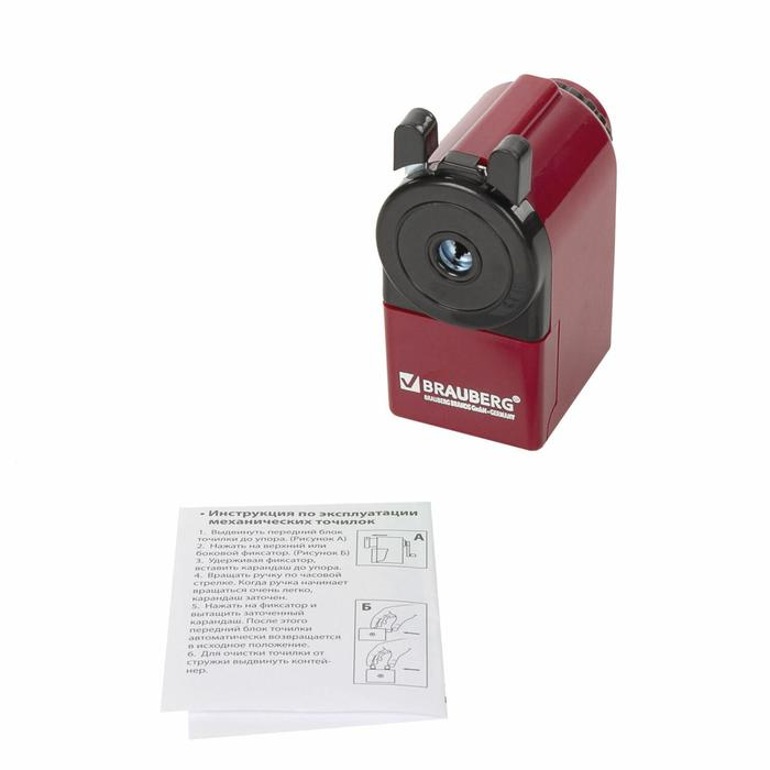 Точилка механическая BRAUBERG, чёрный/бордовый