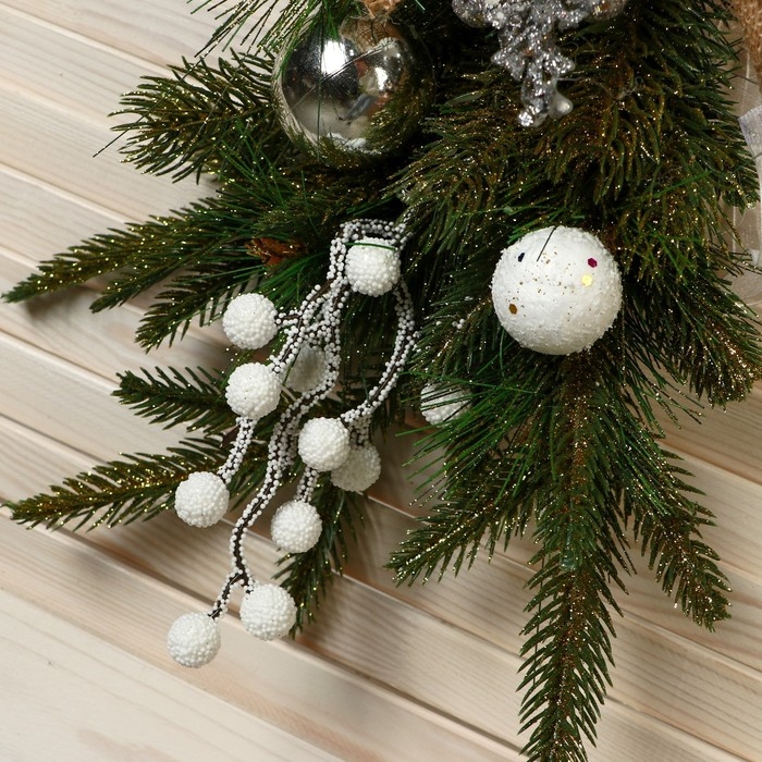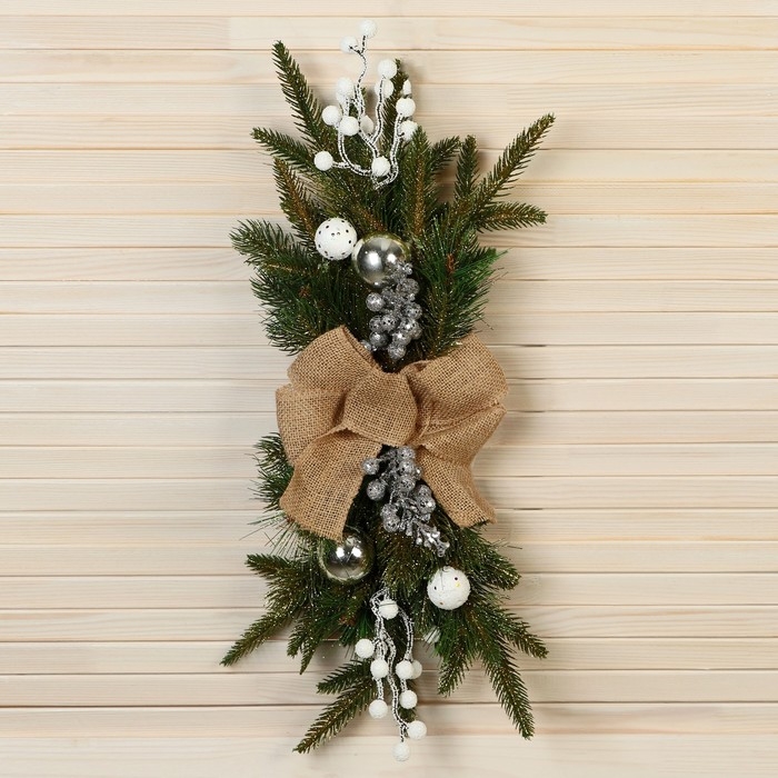 Композиция хвойная "Уютная сказка" 50 см, бант бежевый