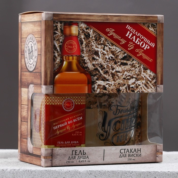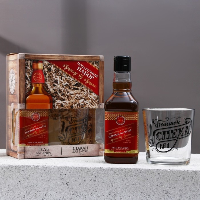 Новогодний подарочный набор косметики «Первому во всём», гель для душа во флаконе виски 250 мл и стакан для виски, Новый Год