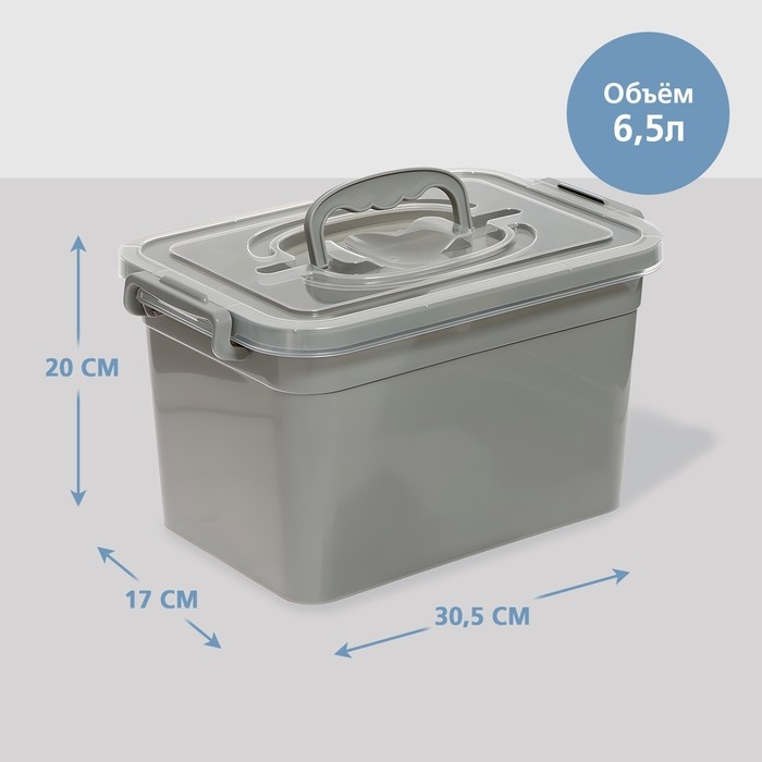 Контейнер для хранения с крышкой, 6,5 л, цвет серый