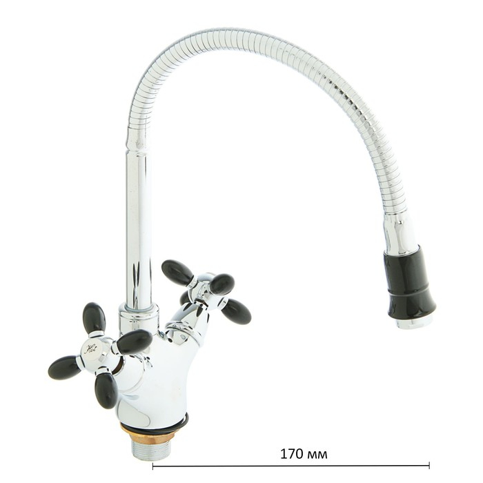 Смеситель для кухни Accoona A4882F, двухрычажный, с гибким изливом, черный/хром