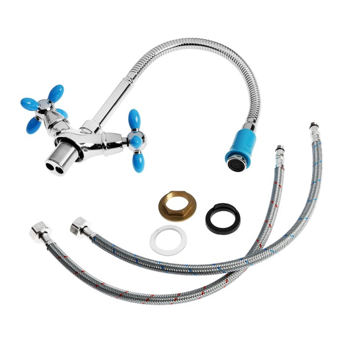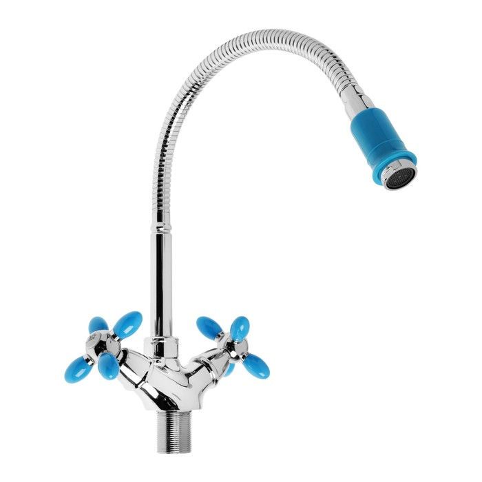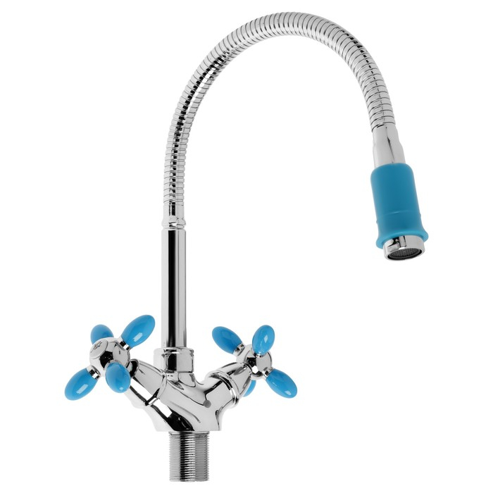 Смеситель для кухни Accoona A4882M, двухрычажный, с гибким изливом, синий/хром
