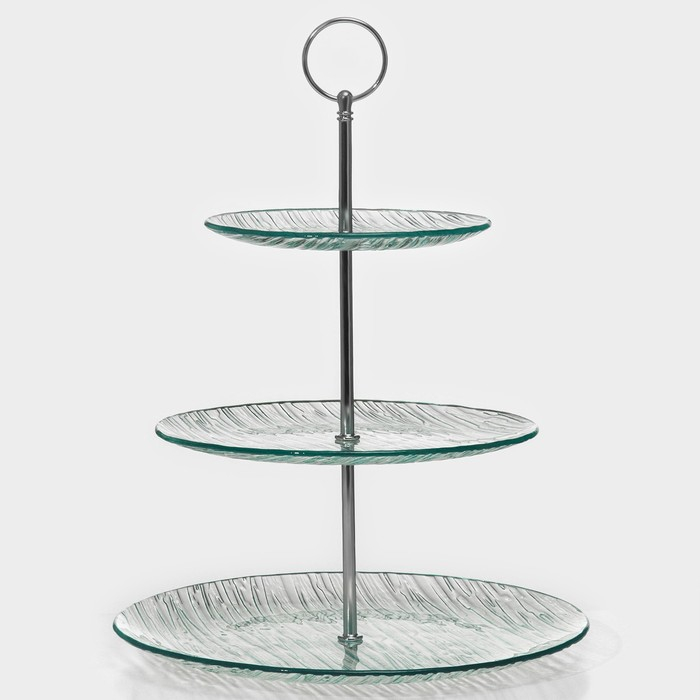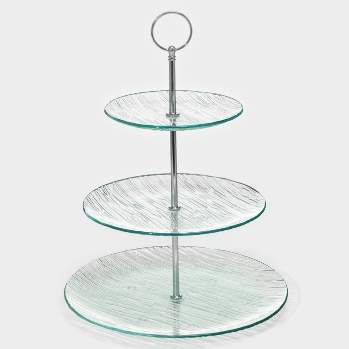 Этажёрка - фруктовница круглая Доляна «Текстура», 3 яруса, d=24/20/15 см, стекло