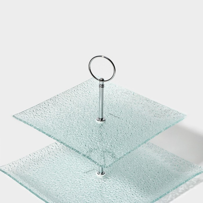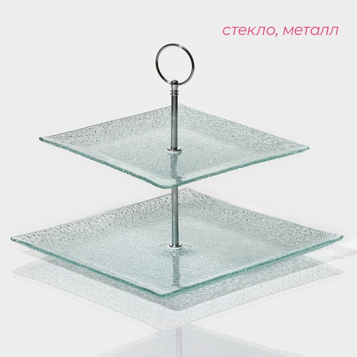 Этажёрка - фруктовница квадратная Доляна «Акцент», 2 яруса, 25×22 см, стекло