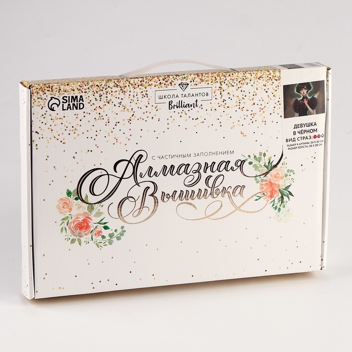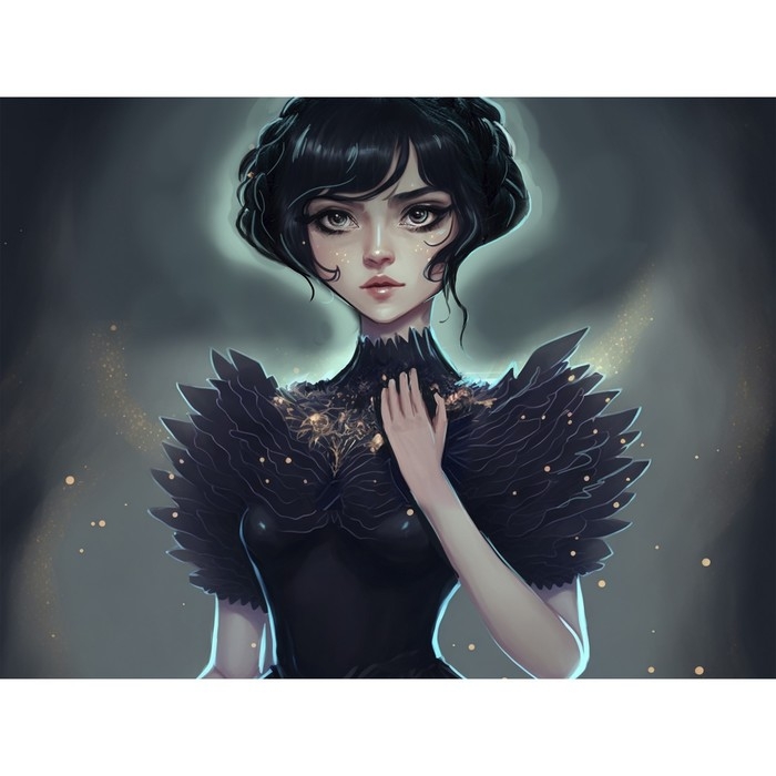 Алмазная мозаика с частичным заполнением на холсте «Девушка в черном» 20 х 30 см