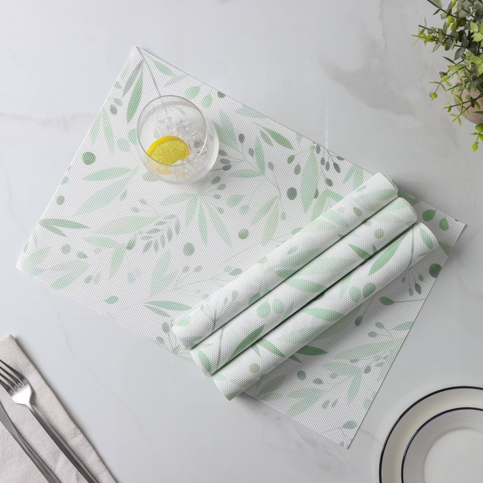 Салфетки сервировочные на стол Доляна «Акварель», 4 шт, 45×30 см, цвет зеленый