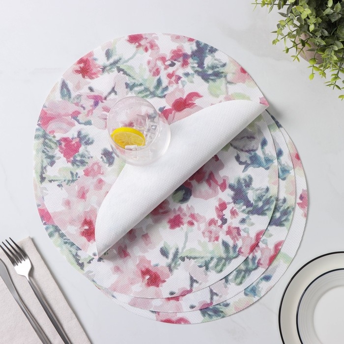 Салфетки сервировочные на стол Доляна «Акварель. Круг», 4 шт, d=38 см