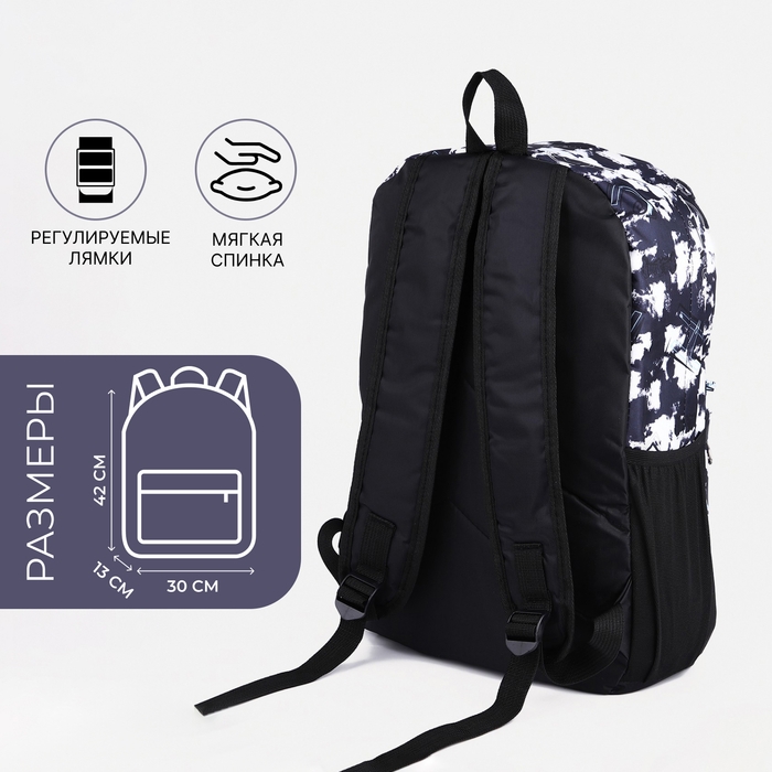 Рюкзак школьный из текстиля на молнии, 3 кармана, цвет чёрный