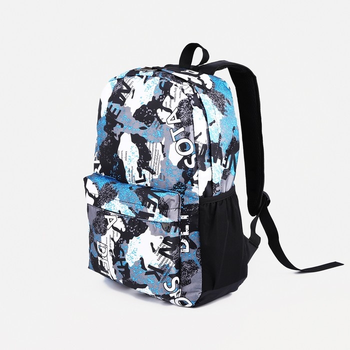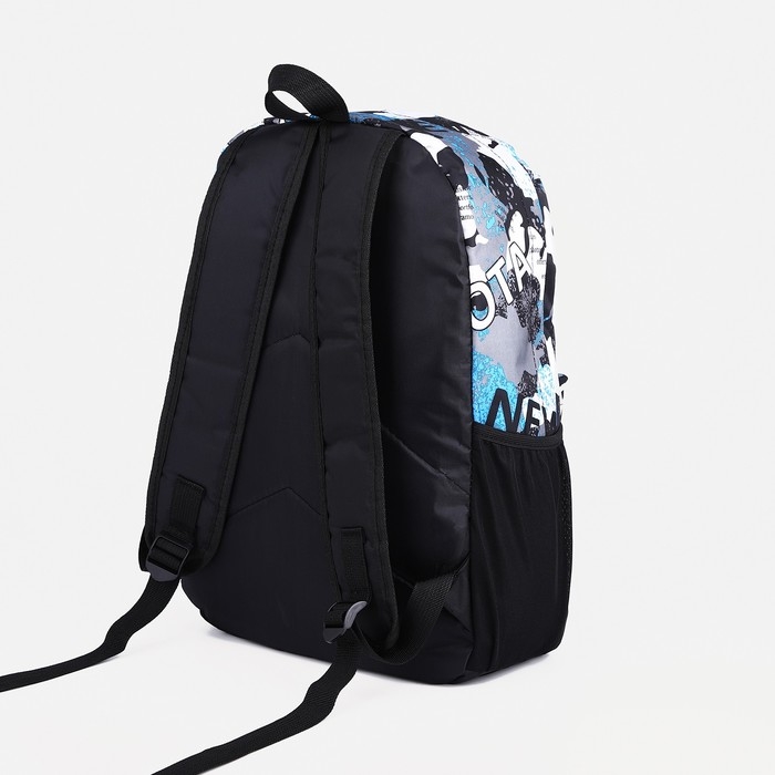 Рюкзак школьный из текстиля, 3 кармана, цвет голубой/серый