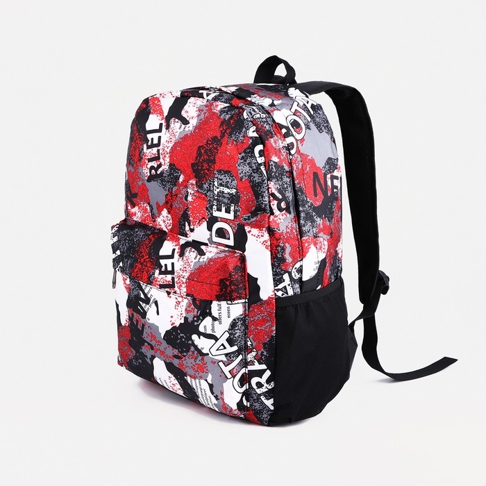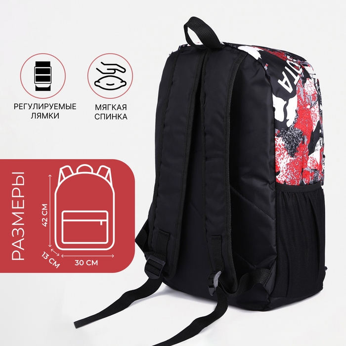 Рюкзак школьный из текстиля, 3 кармана, цвет серый/красный