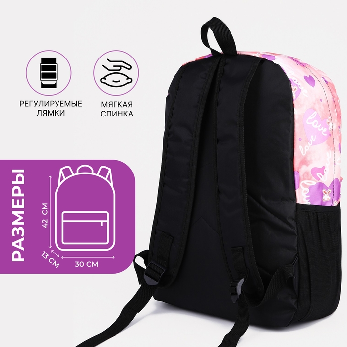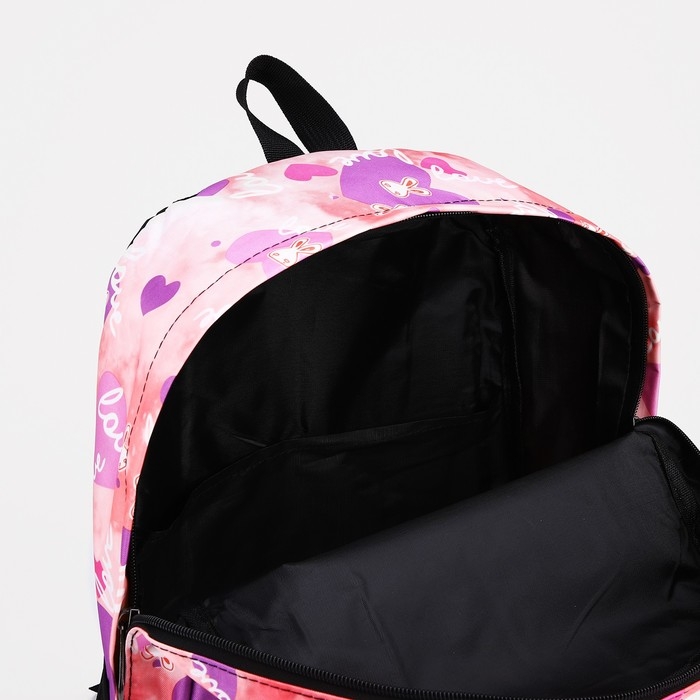Рюкзак школьный на молнии, 3 наружных кармана, цвет розовый
