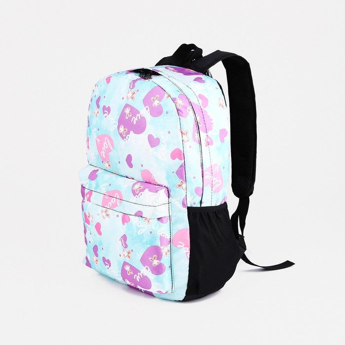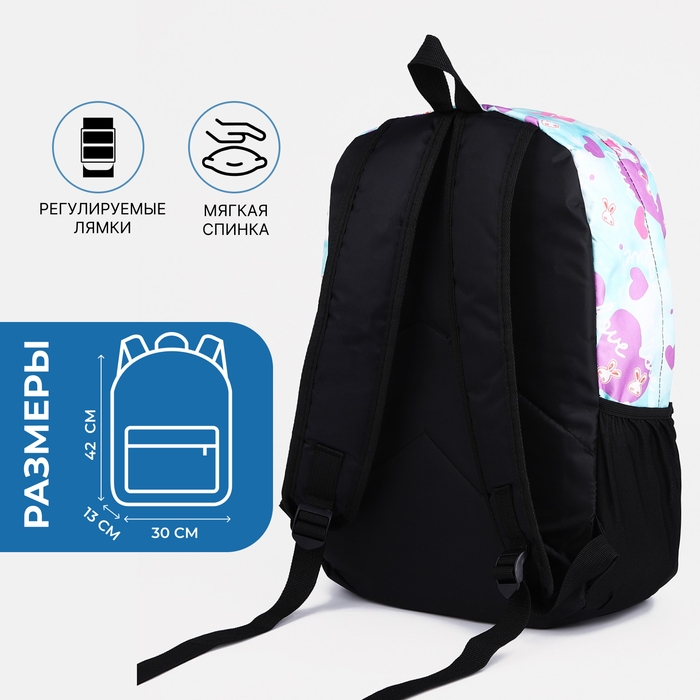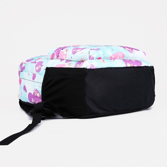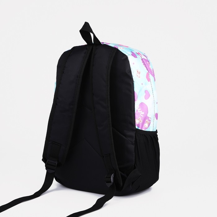 Рюкзак школьный на молнии, 3 наружных кармана, цвет голубой/сиреневый