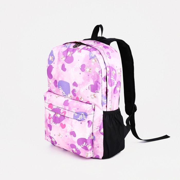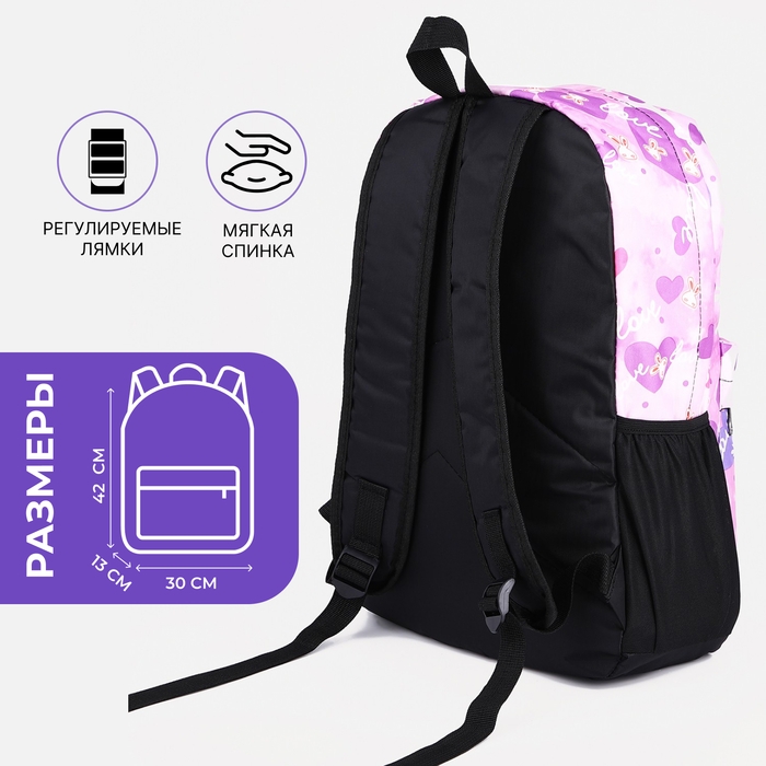 Рюкзак школьный на молнии, 3 наружных кармана, цвет сиреневый