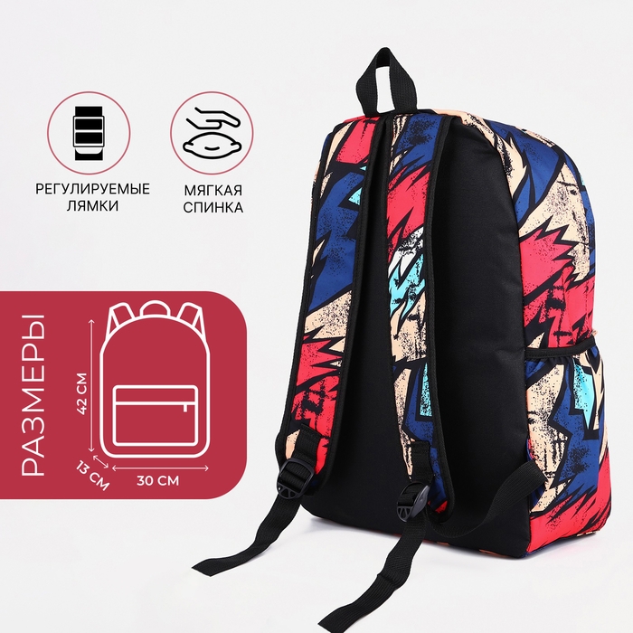 Рюкзак школьный из текстиля на молнии, 3 кармана, цвет красный/синий