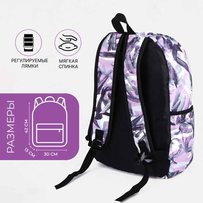 Рюкзак школьный из текстиля на молнии, 3 кармана, цвет сиреневый