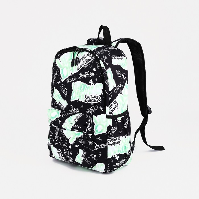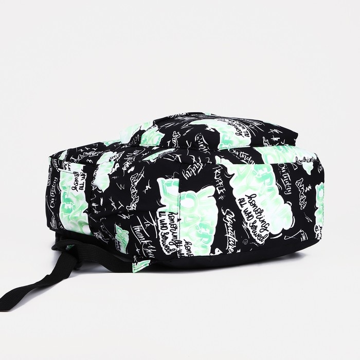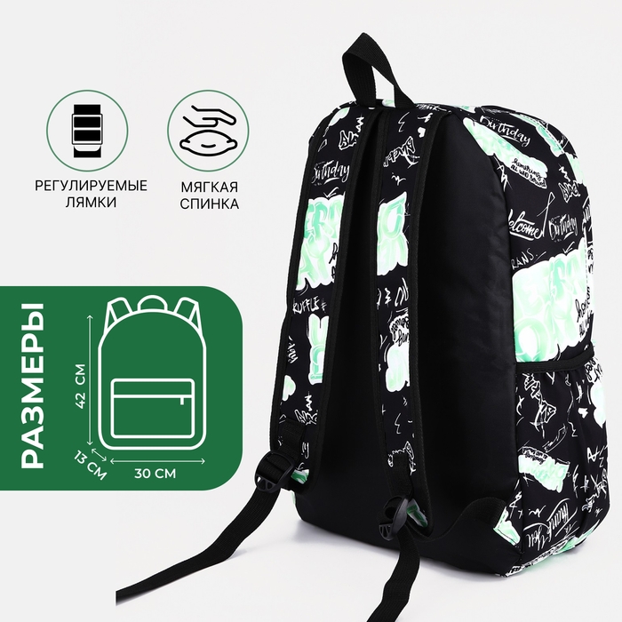 Рюкзак школьный на молнии, 3 наружных кармана, цвет зелёный/чёрный