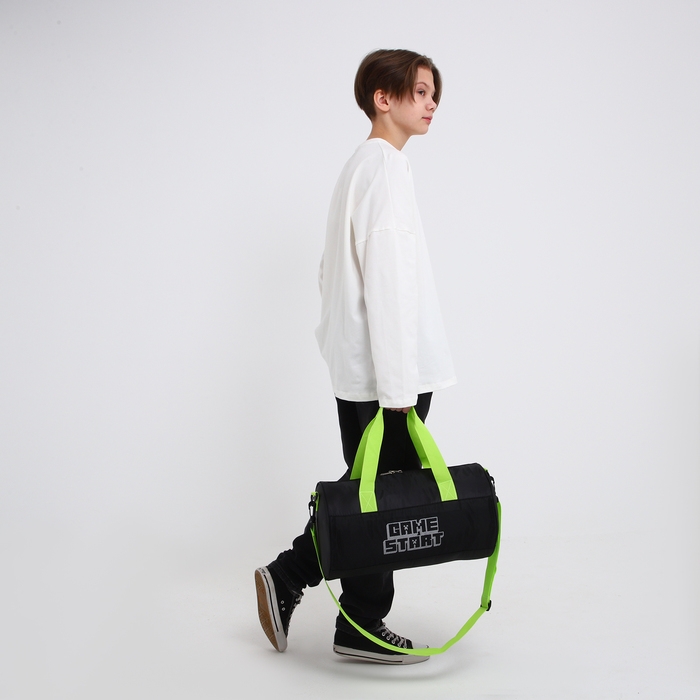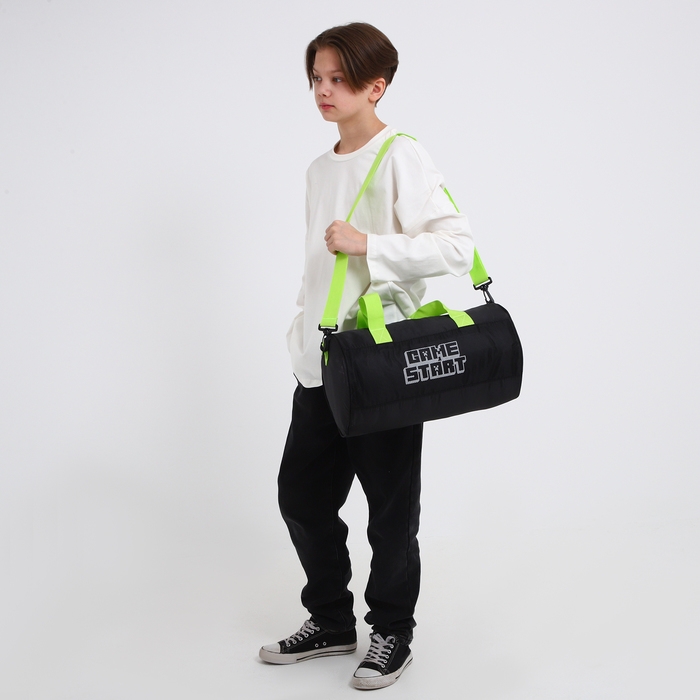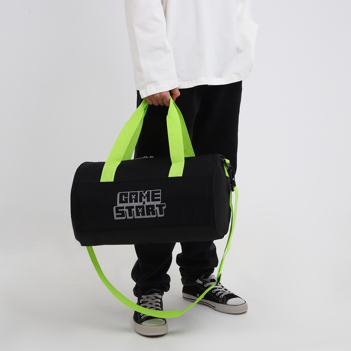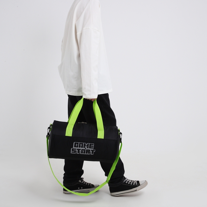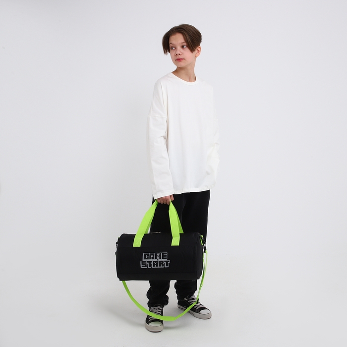 Сумка спортивная Game start, 40х24х21, отделение на молнии, длинный ремень, черный цвет
