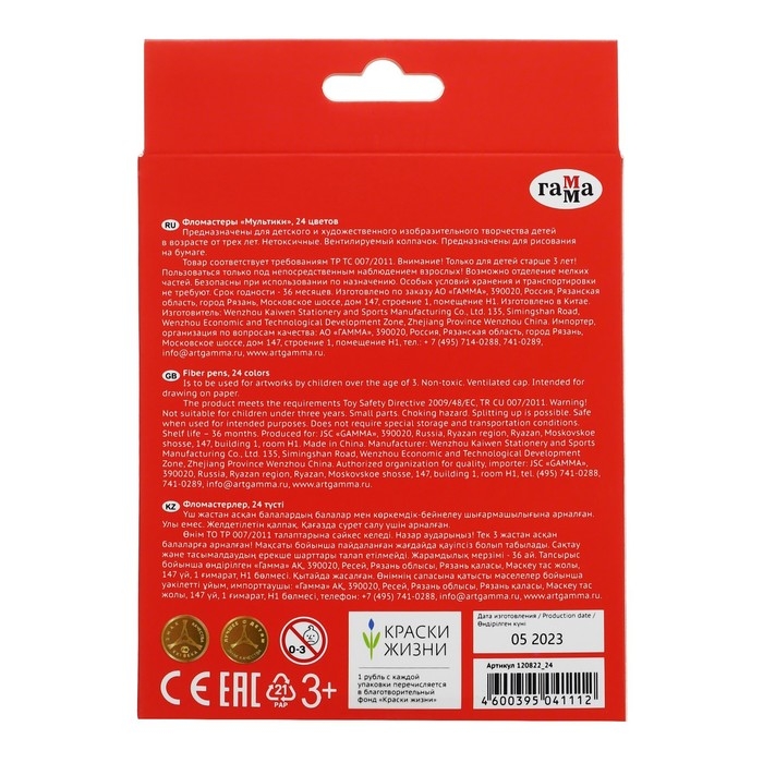 Фломастеры ГАММА серии "Мультики" созданы для комфортного рисования. Фломастеры имеют устойчивый к продавливанию наконечник, который не проваливается внутрь корпуса даже при сильном нажатии. Вентилируемый колпачок обеспечивает безопасность ребенка в творческом процессе – при случайном проглатывании не препятствует дыханию. При этом наконечник фломастера изолирован и чернила не высыхают. Чернила на водной основе с пищевыми красителями легко смываются с кожи и отстирываются с одежды. Упакованы в картонную коробку.