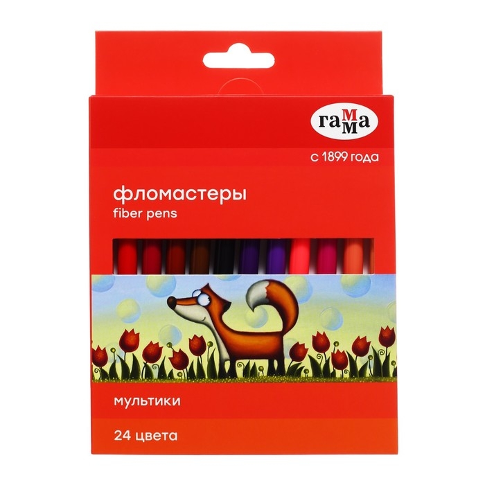 Фломастеры 24 цвета Гамма "Мультики", смываемые, картонная упаковка, европодвес, 120822_24